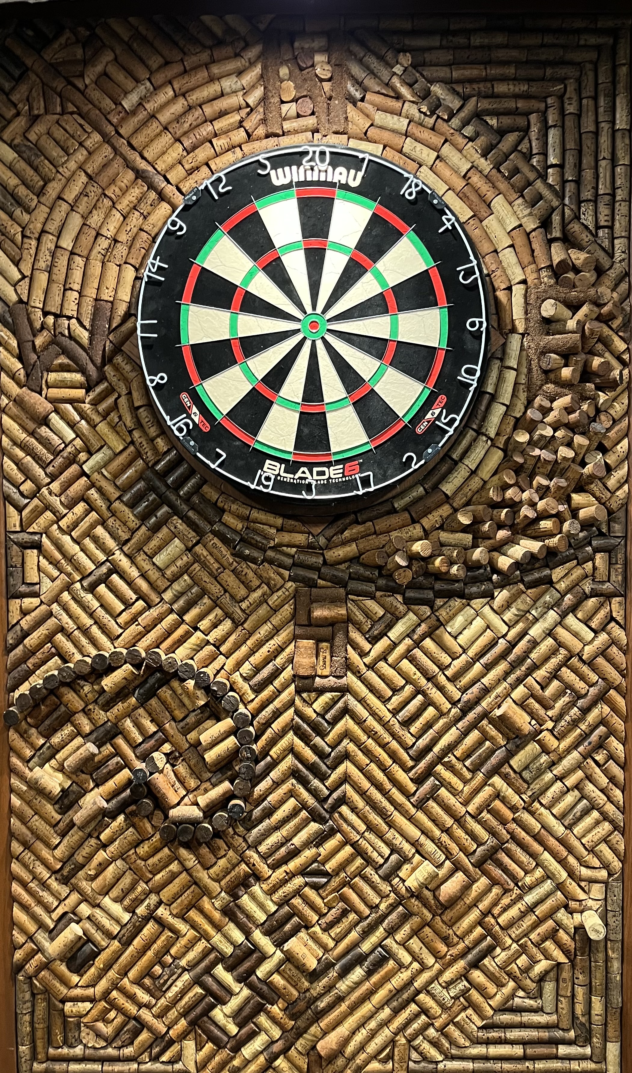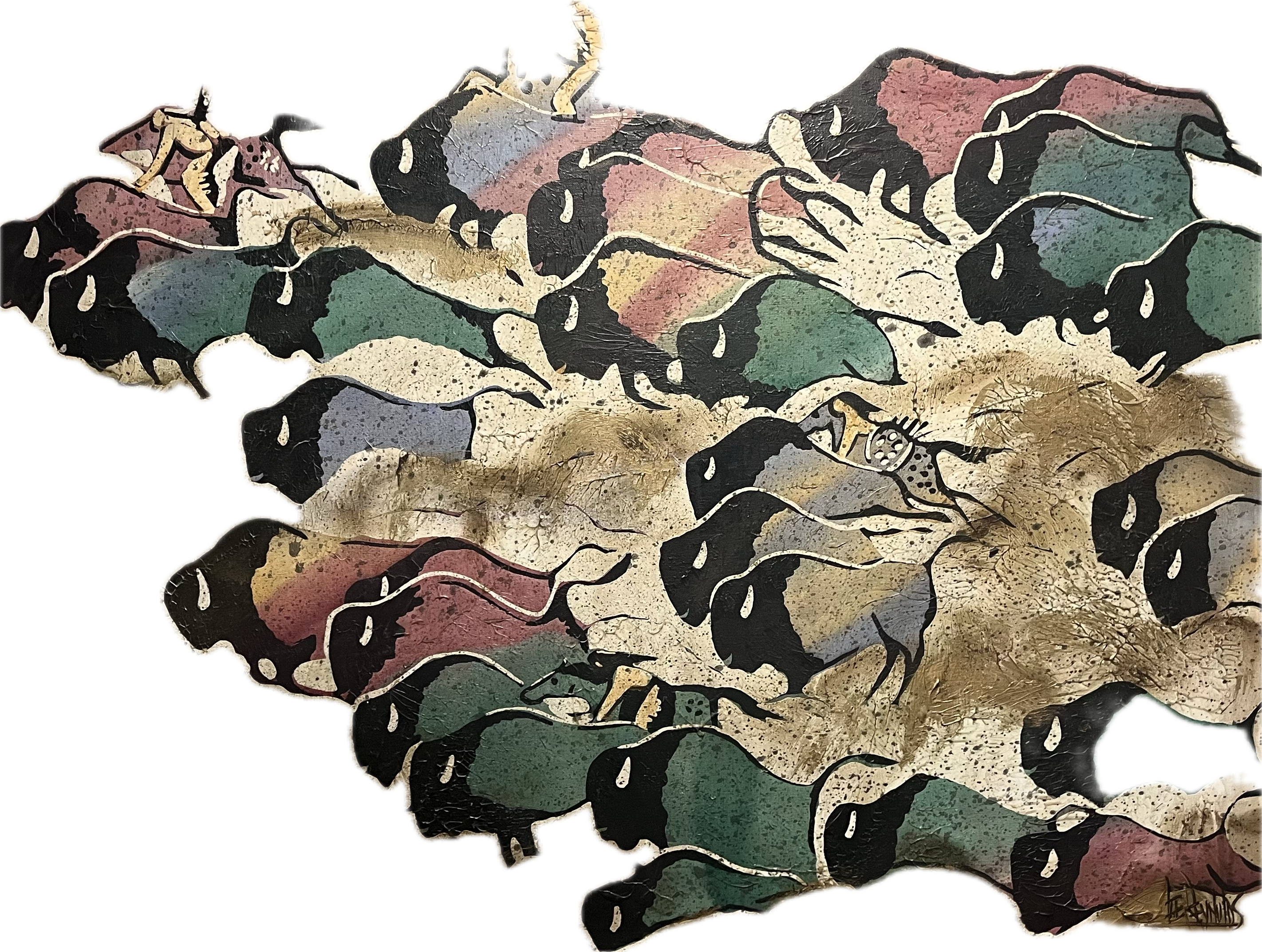Upon returning to Ohio, I hung this painting near a dartboard in my home. It was to the right and on the adjacent wall (directly across from the throwing line). I noticed that when I threw darts at my best, my hand always returned to the same spot, aligned with one particular buffalo ... a golden buffalo!